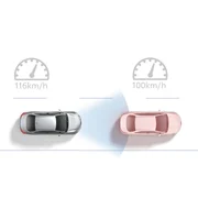 Utrzymuj bezpieczną odległość od poprzedzającego pojazdu dzięki inteligentnemu tempomatowi adaptacyjnemu, który spowalnia pojazd do zatrzymania i przyspiesza z powrotem do prędkości początkowej, gdy droga jest wolna.